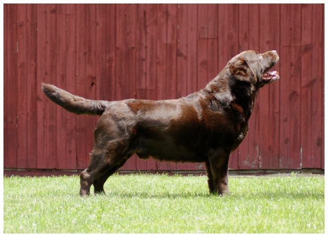 UKC BISS CH Stormy C's Truffle Shuffle 'CHUNK' Born - June 24, 2010 Hips - OFA Good, Elbows - OFA Normal Eyes - CERF Clear, PRA - Optigen Normal/Clear EIC - Clear, HNPK - Clear Heart - OFA Cardiac Normal (cleared by Echo) EebbDD (Chocolate carries yellow and does not carry the "dilute" gene) Full dentition with scissor bite